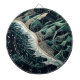 Serene Shores: This stunning top-down illustration captures the harmony of land and sea, featuring waves gently breaking on sandy beaches with lush green mountains in the background. Rendered in soothing shades of dark blue-green, the artwork evokes a sense of tranquility and balance. The intricate detail of the ocean’s patterns meeting the shore, paired with the trees lining the water’s edge, enhances the peaceful atmosphere. Created in a woodcut print style with simple lines and a flat design, the piece is reminiscent of hand-drawn animation, offering a timeless, serene depiction of nature’s beauty.