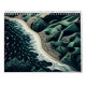 Serene Shores: This stunning top-down illustration captures the harmony of land and sea, featuring waves gently breaking on sandy beaches with lush green mountains in the background. Rendered in soothing shades of dark blue-green, the artwork evokes a sense of tranquility and balance. The intricate detail of the ocean’s patterns meeting the shore, paired with the trees lining the water’s edge, enhances the peaceful atmosphere. Created in a woodcut print style with simple lines and a flat design, the piece is reminiscent of hand-drawn animation, offering a timeless, serene depiction of nature’s beauty.