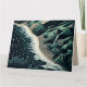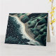 Serene Shores: This stunning top-down illustration captures the harmony of land and sea, featuring waves gently breaking on sandy beaches with lush green mountains in the background. Rendered in soothing shades of dark blue-green, the artwork evokes a sense of tranquility and balance. The intricate detail of the ocean’s patterns meeting the shore, paired with the trees lining the water’s edge, enhances the peaceful atmosphere. Created in a woodcut print style with simple lines and a flat design, the piece is reminiscent of hand-drawn animation, offering a timeless, serene depiction of nature’s beauty.