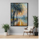 Dieses stilechte Poster im Stile eines Impressionisten besticht durch die ruhige Schönheit eines Sonnenuntergangs am Wasser. Freuen Sie sich auf ein reichhaltiges Zusammenspiel von warmen Orangen, cooler Blues und üppigen Grüntönen. Die sanften Pinselstriche und die helle Szene erinnern an die verträumte, emotionale Qualität des klassischen Impressionismus und schaffen eine beruhigende, aber lebendige Atmosphäre. Die Bäume ragen sanft über das reflektierende Wasser, wo weiche Wellen das verblassende Sonnenlicht einfangen. Ein paar Spaziergänge vorbei, um die friedliche Stimmung und den zeitlosen Charme der Szene zu erhöhen. Dieses Stück wurde mit fortschrittlicher KI-Technologie hergestellt, die traditionelle impressionistische Techniken mit modernen Algorithmen kombiniert, um eine einzigartige und harmonische Vision zu schaffen. Dieses Kunstwerk ist ideal für alle, die die klassische Kunst mit einer modernen Drehung schätzen, und eignet sich für eine Vielzahl von Räumen - vom Wohnzimmer bis zum Büro. Es ist ein Ort der Ruhe und Nostalgie, der perfekte Ort für Liebhaber von Naturlandschaften, beruhigenden Umgebungen und einer raffinierten Dekoration.