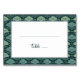 This elegant wedding place card features a rectangular layout with a central white space framed by a thin black line, surrounded by a lush pattern of stylized leaf motifs in varying shades of green on a dark teal background. The botanical design creates a serene and inviting atmosphere, perfect for adding a touch of nature to your event. With customizable placeholder text, it's easy to personalize for each guest, ensuring a sophisticated and cohesive look for your special day.