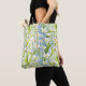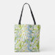 Eine Tote-Tasche, verziert mit sanften weißen und lavendelfarbenen Wildblumen auf einem sanften blaugrünen Hintergrund, die beruhigende, naturinspirierte Eleganz für alltägliche Besorgungen, Bücher oder Einkäufe bringt und eine verfeinerte, geschenkbereite Wahl für jeden darstellt, der botanische Kunst liebt.