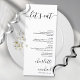 Modernes, minimalistisches, schwarz-weißes Hochzeitsmenü mit eleganten, charakteristischen Stilnamen. Personalisieren Sie Ihre Menüdetails in schicken Buchstaben. Entwickelt von Thisisnotme©