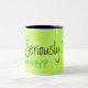 Sérieusement tasse de café - arrière - plan de vert de chaux avec le texte noir, vert et jaune - combien de manières peuvent vous indiquer sérieusement