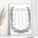 Découvrez romantisme et élégance avec cette affiche raffinée, ornée d'une élégante couronne de fleurs violettes. Avec 12 tables au total, cette affiche ajoute une touche sophistiquée à votre décor mariage.