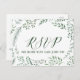 Cette couronne rustique avec menu feuille vert choix carte postale RSVP est parfaite pour un mariage extérieur. Le design se compose d'un cadre magnifique et fantaisiste de feuilles d'aquarelle, de plantes et de verdure. Cette carte postale de réponse mariage demande à la clientèle quel repas elle souhaite à la réception.