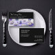 Utilisez cet élégant modèle de carte de visite de restauration présenté sur un stock carte de visite arrondi d'angle et un design intelligent à deux côtés avec une image de traiteur sur le devant et vos coordonnées sur le revers de la page. Conçu pour un traiteur mariage, un organisateur de fêtes ou une salle de restauration.