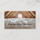Cartes de visite de l'entrepreneur des services d'isolation résidentielle dans un design simple à deux côtés avec votre nom d'entreprise présenté et graphique d'un grenier à la maison rempli d'isolation mousse comme toile de fond dans ce modèle personnalisé.