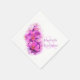Schöne orchid Art Aquarell Hochzeitsserviette. Eine großartige persönliche Ergänzung zu Ihren Hochzeitstischen. Personalisieren Sie Ihre Brautnamen und Vornamen. Ideal für Orchideen- oder Gartenhochzeiten oder Liebhaber von rosa lila Orchideen. Einzigartig bemalt und entworfen von Sarah Trett.