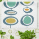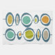 Ajoutez une touche de couleur à votre cuisine du milieu du siècle avec cette adorable serviette rétro. Il présente les couleurs vives et audacieuses du turquoise, du bleu, de l'orange, de l'or et du bronze.