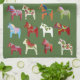 Ce design est fait de 22 chevaux de dala en bois conçus, sculptés et peints par Julia Morrill