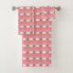 Serviette mauve douce et dorée à rayures sertie d'un brin de saumon.