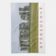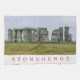 Une belle vue sur le fameux cercle en pierre de Stonehenge dans le Wiltshire en Angleterre imprimé sur une serviette de thé souvenir.