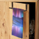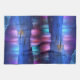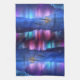 Les aurores boréales brillent au-dessus d'un paysage hivernal enneigé. Des arbres roses, violets, bleus et verts illuminent les champs enneigés et se reflètent depuis un lac gelé. Au bord de l'eau se trouve un chalet avec une lumière chaude qui s'écoule de ses fenêtres et de la fumée venant de la cheminée - un refuge confortable du froid étincelant.