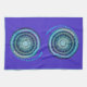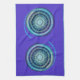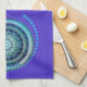 Serviette de cuisine avec arrière - plan mauve bleu et vert médaillon.