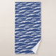 Serviette de bain bleu et blanc, avec motif graphique illustratif des vagues. Motif inspiré des motifs japonais traditionnels et des tissus d'indigo.