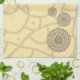 Un mandala en forme de dentelle en cercle concentrique en bleu foncé avec des points bleu vif et dorés comme des étoiles, frangés entre les couches, crée un design amusant qui rappelle un ciel étoilé étoilé.