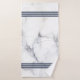 Faux marbre blanc avec veines grises et bandes noires bordent les deux extrémités.