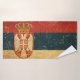 Serviette de bain dressée avec le drapeau de la Serbie en vintage état de détresse grunge style ancien. Ce design rayé présente le drapeau serbe dans un style vintage rétro. Ce design est une excellente façon de vous montrer fiers d'être serbe ou de donner en cadeau à n'importe quel Serbe.