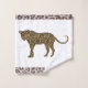 Léopard majestueux sur fond blanc avec bordure empreinte de léopard. Thème classique de la faune africaine.
