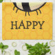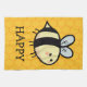 Jolie abeille jaune et noire sur le mot HAPPY en texte noir.