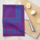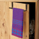 Une serviette de cuisine richement colorée ou une serviette de thé, avec un mélange'n'match design de motifs traditionnels en forme de ogee dans les tons violet et des chèques audacieux en Plum et Bleu éblouissant.