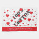 Petits, moyens et grands coeurs flottent doucement au-dessus d'une bande rouge portant le texte "Joyeux 2e anniversaire". Derrière les coeurs, vous voyez le texte "caché" "100% coton" en l'honneur du cadeau traditionnel du deuxième anniversaire étant le coton. Bien sûr, cette serviette merveilleusement assoiffée est faite de 100% Coton, ce qui en fait un excellent choix pour le couple heureux et heureux.