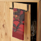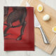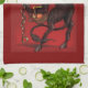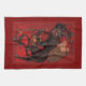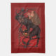 Krampus avec une charge des enfants vilains sur une serviette de cuisine.
