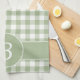 Cette serviette de cuisine décorée d'un monogramme comporte un motif vérifié par guingan de vert sauge et de blanc. Un secteur de modèle est donné pour vous pour personnaliser avec votre initiale. Personnaliser de clic il pour choisir une police différente, pour changer la taille du motif ou apporter d'autres modifications à la conception.