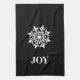 Cette serviette de cuisine est montrée avec un imprimé de Noël classique d'un grand flocon de neige avec le texte de JOY. Couleur Noir Personnaliser cet article ou acheter comme indiqué.