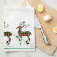 Montrée en blanc, cette serviette de cuisine est composée de trois cerfs rouges et verts et de deux bandes vertes près du fond dans des couleurs festives de Noël. Graphiques aux deux extrémités des serviettes. Customisez cette serviette ou achetez comme prévu.