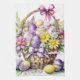 Cette serviette de cuisine est montrée avec un joli imprimé de panier de Pâques fleuri. Customiser cet objet ou acheter tel quel Image sous licence
