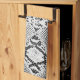 Serviette de cuisine avec une photo d'une peau de serpent noire et blanche de faux. Personnalisable.