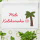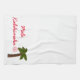 Serviette de cuisine montrée en blanc et rouge avec une copie de paume de vacances. Mele Kalikimaka est Joyeux Noël dans le Hawaïen. Customisez cet article ou l'achetez comme est.