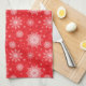 Cette serviette de cuisine est affichée dans un imprimé de flocons de neige de Noël. Couleur rouge, Blanc Customiser cet article ou acheter comme indiqué.