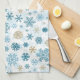 Cette serviette de cuisine est affichée dans un imprimé de flocons de neige de Noël. Couleur Turquoise, Or, Multi, Blanc Customiser cet article ou acheter comme indiqué.