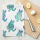 Les images vintages des tortues de mer dans des tons de mer et de ciel de bleu, de l'aqua et du vert sur le blanc font à une grande plage la serviette de cuisine orientée. Les articles assortis et d'autres conceptions orientées de mer et de plage sont disponibles dans mon magasin de Zazzle.