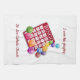 Pour les gagnants qui jouent au Bingo ou pour les prix de porte, c'est un complément parfait à votre cuisine. Serviette blanche avec Red Bingo Card avec boules. Vous pouvez changer le nom de l'église ou de l'organisation en votre nom.