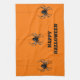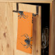Serviette de cuisine avec image d'araignées contre arrière - plan orange pour Halloween