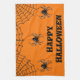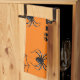 Serviette de cuisine avec image d'araignées contre arrière - plan orange pour Halloween