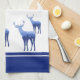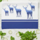 Cette serviette de cuisine est présentée dans les tons bleu et blanc hivernal avec des rayures blanches sur le bleu royal. Plusieurs cerfs dans les tons bleus avec des scènes hivernales ombragés sur leur corps grace les deux extrémités de cette serviette. Sur un arrière - plan blanc. Customisez cet objet ou achetez comme prévu. Image stock www.freepik.com