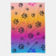 Empreintes de pattes / serviette de cuisine multicolore.