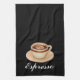 Décorez votre cuisine avec cette serviette de cuisine de noir de café express. Elle a une tasse de café express là-dessus avec un arrière - plan noir.