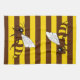 Deux abeilles caricaturales sur un arrière - plan de beestripes jaunes et brunes. Les abeilles font face à des façons différentes, de sorte qu'elles seront toutes les deux la bonne façon de monter lorsqu'elles seront accrochées sur un porte-serviettes.