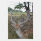 Photo de près d'un cerf dans un parc imprimé sur une serviette de cuisine.