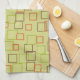 Un motif rétro vert citron vert et orange orne cette élégante serviette de cuisine. Le design est issu de l'art original.