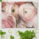 Cette serviette de cuisine simple et élégante est ornée de fleurs de pivoine rose.