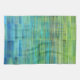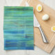 Serviette de cuisine colorée dans les tons bleu, vert, turquoise et frais ressemblant à de l'eau cool ou des cascades dans la nature.