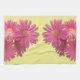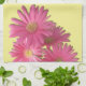 Il y a tellement d'histoires sur la marguerite. Dans la littérature, Goethe immortalisa la marguerite quand Marguerite eut besoin de savoir si Faust l'aimait alors qu'elle arrachait les pétales de marguerite et disait : "Il m'aime. Il ne m'aime pas." La marguerite a reçu son nom scientifique, Bellis, de la mythologie. On dit que la divinité gardienne des vergers a poursuivi une jeune nymphe d'arbre sans réciprocité. Alors qu'elle cherchait à l'échapper, la nymphe demanda l'aide des dieux. Le puissant roi d'Argos était grand-père de la nymphe, donc quand elle a appelé les dieux à l'aide, ils l'ont transformée en une minuscule fleur appelée Bellis, lui permettant d'échapper à un terrible destin. Il y a aussi une légende chrétienne impliquant cette fleur joyeuse. Il dit que les Sages, pendant leur voyage pour trouver le Bébé Jésus, ont demandé un signe pour les aider à trouver le lieu de naissance réel une fois à Jérusalem. Ils ont remarqué de nombreux amas de petites marguerites blanches près d'une écurie. Reconnaissant la ressemblance de la fleur avec l'étoile au-dessus, ils savaient qu'ils avaient trouvé la Sainte Famille. On pense que le nom "Daisy" vient des mots anglo-saxons "daes BA" signifiant littéralement "oeil du jour". La marguerite est considérée, par certains, comme le porte-parole de la bonne fortune et du bonheur. D'autres disent qu'il symbolise l'innocence et la pureté. Avec le Pois Doux, le Daisy est aussi l'une des fleurs de naissance d'APRIL. Pour une petite fleur aussi simple, la marguerite a une longue et impressionnante liste d'histoires qui l'entourent. Ces marguerites Gerbera ou "Gerber" sont généralement plus grandes que leurs parents "vrais marguerites", certains aussi grands que des petits tournesols. Les marguerites Gerbera sont la 5ème Fleur la plus populaire au monde ! Les marguerites Gerbera représentent la joie, la joie, l'amitié et la chance. La marguerite rose DARK Gerbera, en particulier, symbolise la gratitude et une belle façon de dire, "Merci". Ces fleurs incroyablement belles sont de la variété "single Gerbera", comme noté avec les pétales de taille simple et l'oeil vert-jaune. Ils sont offerts sur un fond jaune et ensoleillé sur cette jolie serviette de cuisine. Il est montré ici dans l'orientation "plié en deux" parce que je suis toujours en train de draper mes serviettes de plat à travers la poignée du four.