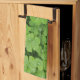 Serviette de cuisine verte fraîche en trèfle. Les gouttes de pluie sur le tissu de cuisine shamrock.